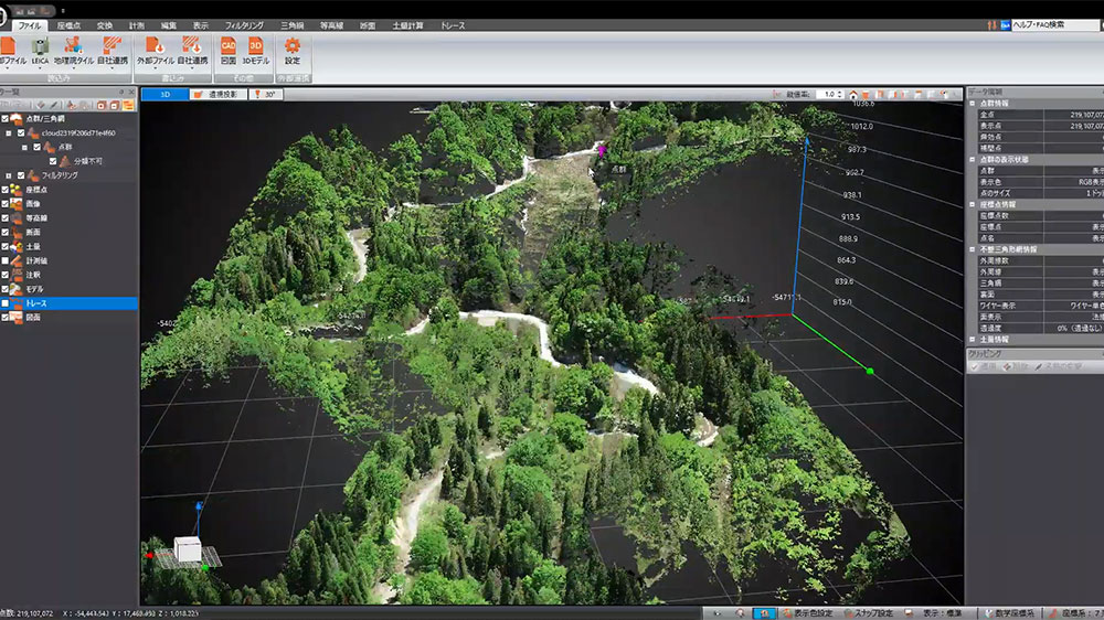 短時間に広範囲の測量が可能。